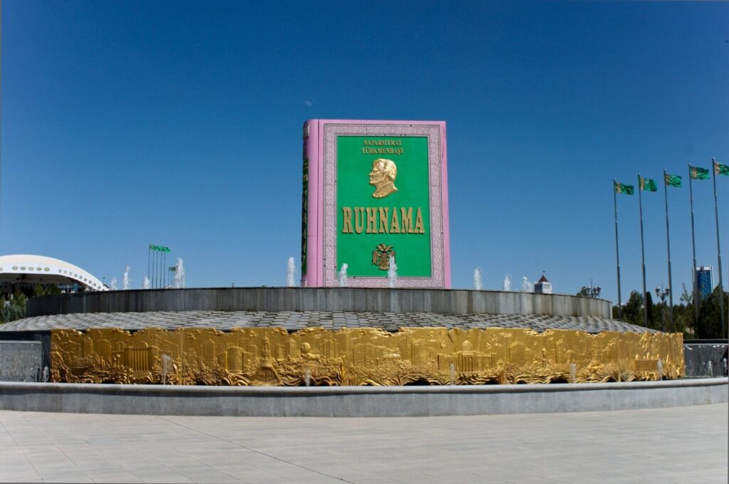 Ну, во-первых, безликий титул «президент» при нем быстро сменился на «Туркменбаши Великий» – то есть, глава всех туркменов. Заодно Ниязов поменял название месяцев в году, назвав один в честь себя, другой – в честь своей матери. Запретил в стране оперу, цирк и балет, потому что он всего этого не понимает, а значит – этого не понимает никто. Ну и по мелочи: понаставил себе 14 тысяч прижизненных памятников и написал книгу «Рухнама» – что-то среднее между библией и конституцией для населения. Её должны были изучать и цитировать повсеместно. От детских садов до университетов и собеседований на госслужбу. Кстати, ей в Ашхабаде тоже отдельный памятник стоит.